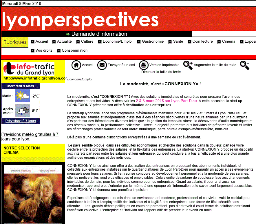 A l’occasion de son événement sur Lyon Part-Dieu des 2 et 3 mars 2016, « CONNEXION Y » a présenté son offre aux entreprises.